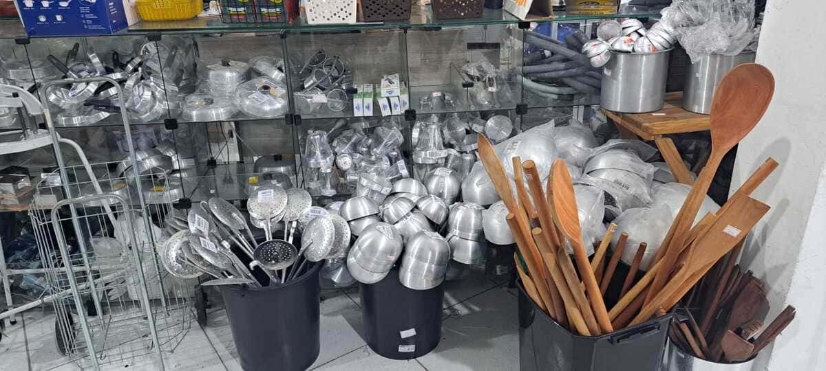 Nossa seleção abrange desde conchas e espumadeiras, até formas, bandejas, bacias e caixas organizadoras, essenciais para otimizar o fluxo de trabalho. Para servir, dispomos de bules, canecões, travessas, pratos, copos, talheres e taças, tudo para uma apresentação impecável.